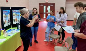 the students could interact and ask questions. This face-to-face interaction with professionals such as law enforcement healthcare professionals and bankers gave students the opportunity to see the people in their community who could actually help them should they find themselves in need. Additionally, each student received a Teen Maze resource book containing education on topics such as online safety, dangers of tobacco use and vaping, and mental health awareness. Contact information for all agencies that participated was also in the book so that students know how to reach out if they need more help.